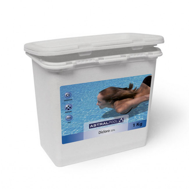 Dicloro granulado 55% se entregan 4 botes de 5 kg – (botes en formato cuadrado) Astralpool (precio por kg)