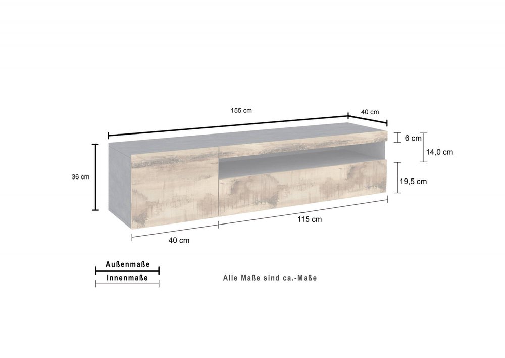 Dmora Mueble Para Tv Para Sala De Estar. Made In Italy. Mueble Para Tv Para Sala De Estar Con 2 Puertas. 150x40h37 Cm. Color Gris Pizarra Y Arce. Con Luz Led Azul One Size Grigio