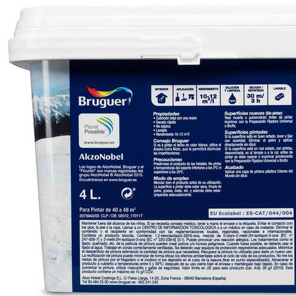 Pintura interior plastico blanco glacier mate 15l bruguer. para uso en interiores. ideal para protección y decoración de paredes y techos. no salpica. aprox 8 11m2 / lEspecificaciones:Peso: 25,5000 KG
