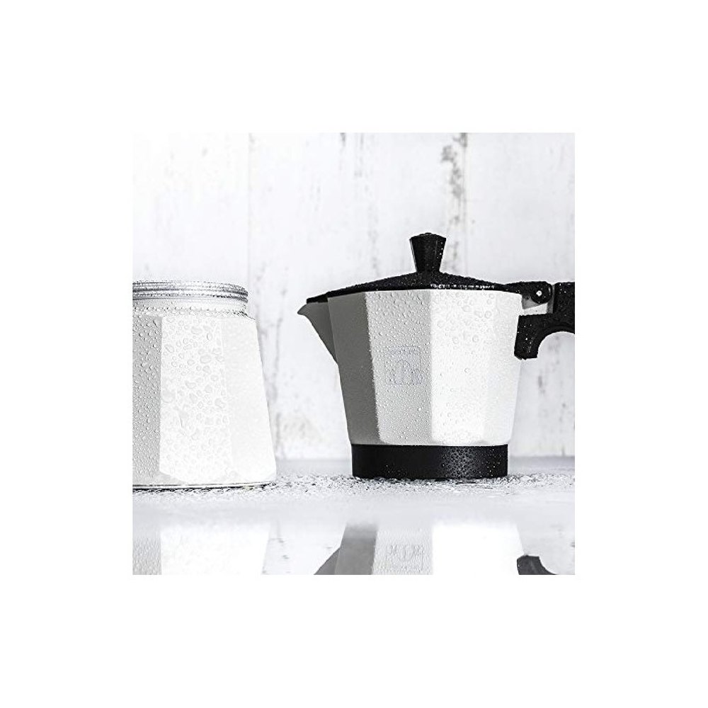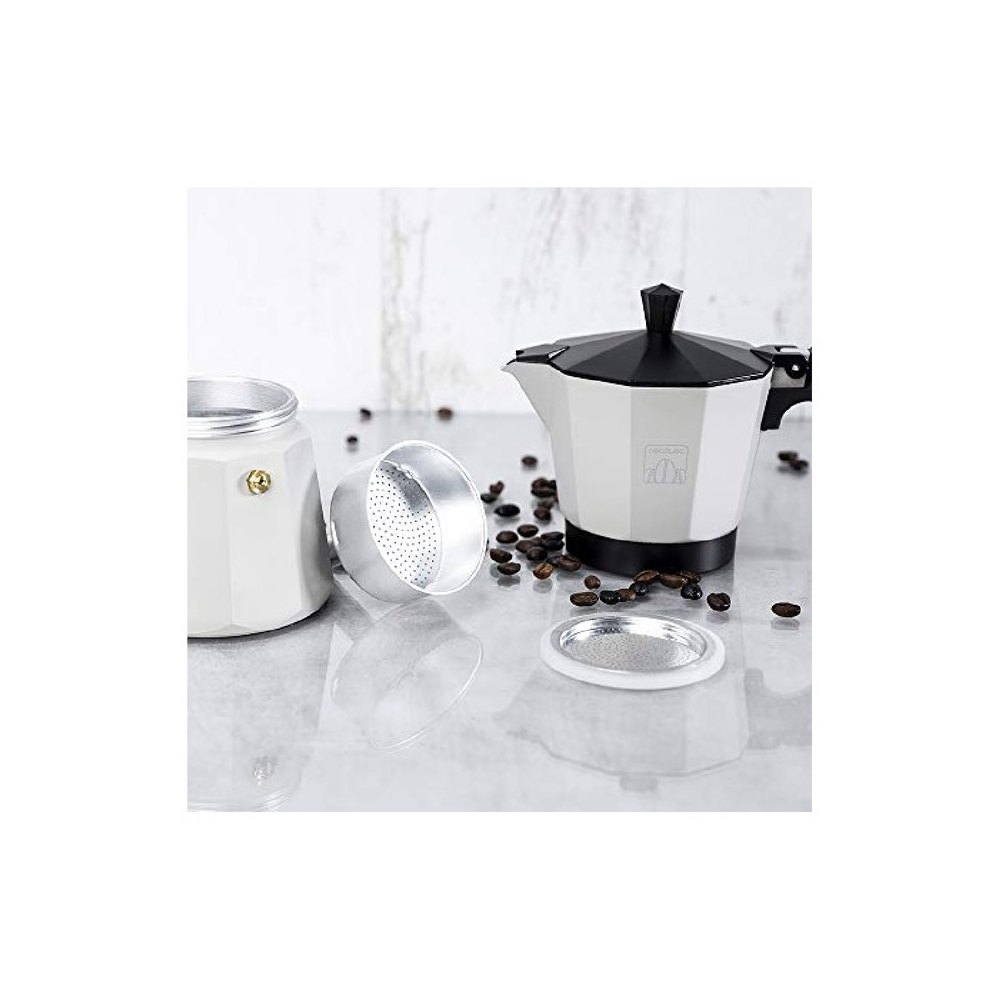 Cafetera Italiana Fabricada en Aluminio Fundido de Alta Calidad para preparar cafés con el mejor cuerpo y aroma.Capacidad de 150 ML, ideal para 3 tazas de café.Mango ergonómico y resistente al calor para un manejo más seguro y cómodo de la cafetera.Incluye un sellado de juntas de silicona de alta calidad que garantiza un sellado hermético, evitando que el agua se escape mientras se prepara el café.El Filtro Interno Está Fabricado En Acero Inoxidable De Alta Calidad Para Obtener Un Café Puro Y Tradicional.Lleva inclinada una Válvula de Seguridad que indica el límite de agua a introducir para mayor seguridad.