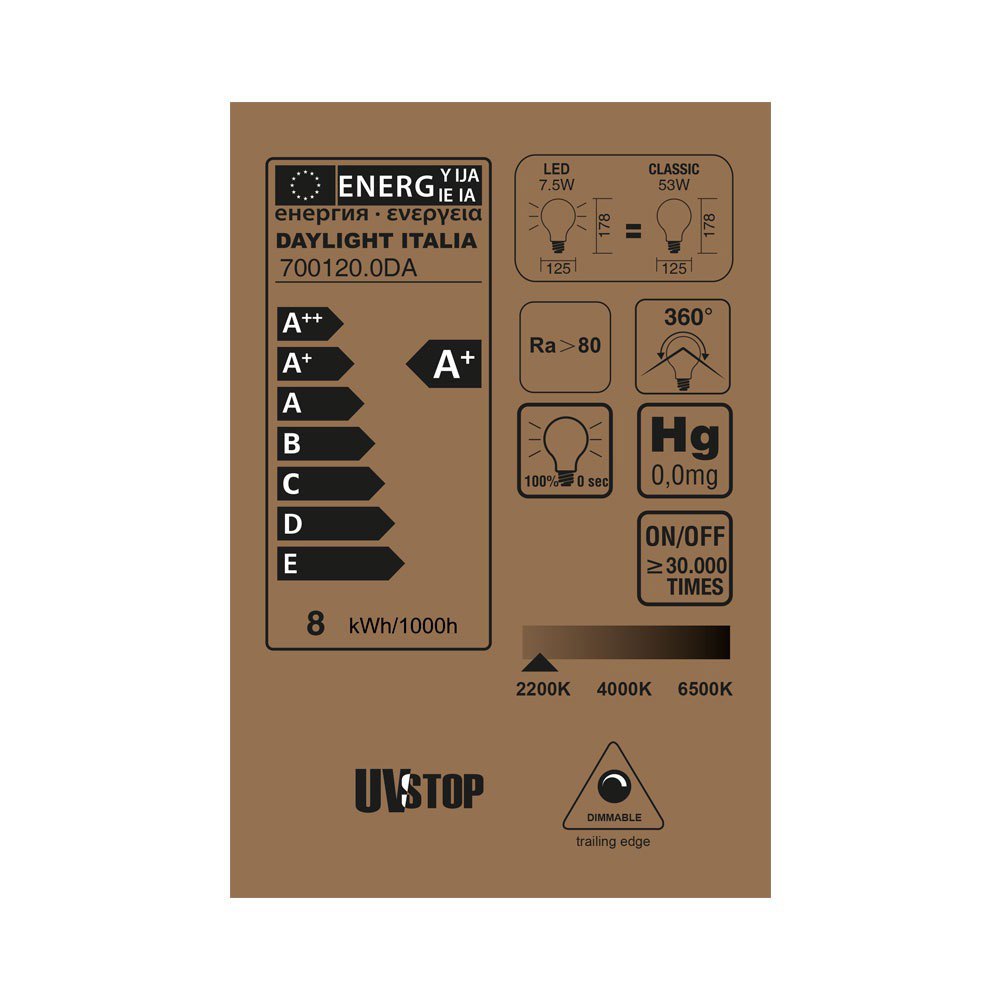 Bombillas y tubos de iluminación.Vintage G125 E27 7.5W 805 Lumens 2200K Esfera LED Bombilla de filamento.