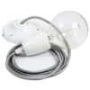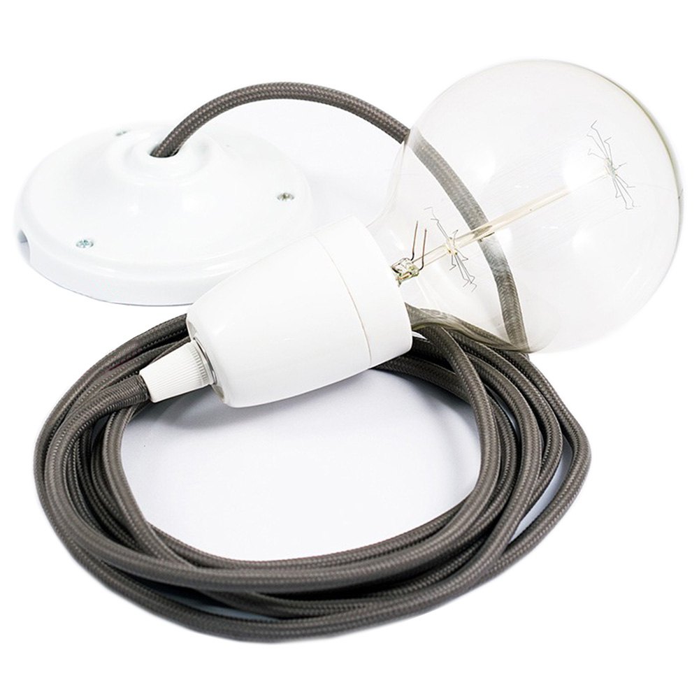 Pendel de Porcelana, lámpara colgante con cable textil Seda Gris RM03.Longitud del cable: 0,5 metros, Montaje: montado, Caja de regalo: No.La lámpara colgante consta de:0.5, 1 o 2 mt de cable 2×0,75 del color seleccionado, 1 Rosa de Porcelana con tacos, 1 Vaso de Porcelana E27.