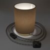 La lámpara de mesa con pantalla Athena Coppa es la solución lista para iluminar con luz suave un salón, dormitorio o rincón de lectura La base de la lámpara de mesa está realizada con nuestra pantalla de cerámica Made in Italy, Coppa: un kit de tres pies de madera, con un propósito de soporte, te permite reinventar la pantalla, transformándola en una base de lámpara de mesa!El acabado cerámico de la base y los pies de madera natural o barnizada dan a esta lámpara de sobremesa un aspecto artesanal llamativo y muy actual. Los pies están equipados con una almohadilla de fieltro para asegurar la adherencia y protección a la superficie de apoyo. La pantalla Athena, también fabricada en Italia, con su gusto clásico y su forma ligeramente acampanada completa el refinado diseño de esta lámpara de sobremesa.Completa con cable, interruptor y enchufe de dos clavijas y disponible en una variedad de acabados, esta lámpara de mesa agregará un toque acogedor a sus habitaciones.Especificaciones:Lámpara de mesa Coppa con pantalla, Athena:Base: pantalla de cerámica Coppa fabricada en ItaliaDiámetro: 240 mmAltura: 140 mmPantalla de tela Athena made in Italy:Conexión: E27Diámetro: 240 mmAltura: 150 mm3 pies de madera de haya:Longitud: 50 mmAncho: 12 mmAltura: 20 mmPortalámparas: Doble anillo termoplástico E27.Tipo de enchufe: 2 polos 2,5 ATipo de interruptor: Bipolar infracableEnchufe y cambie de color según el acabado seleccionado: Blanco, Negro o Transparente.2 mt de Creative Cables (150 cm de enchufe a interruptor + 50 cm de interruptor a portalámparas) 2×0,75, certificado HAR. Hecho en Italia.Bombilla [CBL700117]: LED, A60, E27, 60 mm, 108 mm, 220 / 240V, 7W, Clase: E. 2700 K, 806 Lm, regulable