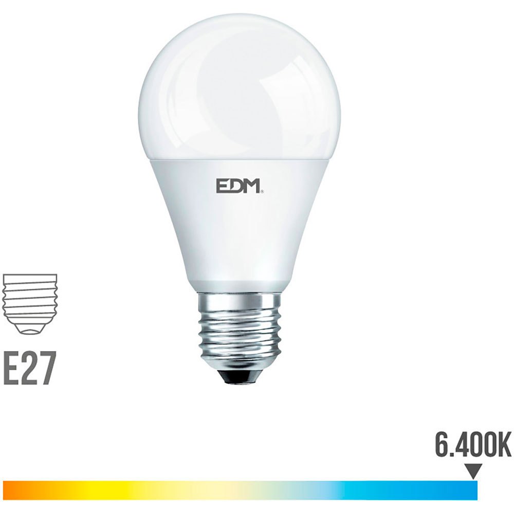 Bombilla led estándar e27 7w 580 lm 6400k luz fría ø 5,9 x 11 cm 25000h ac 220 240v clase a + 220 ° edmEspecificaciones:Vida estimada (H): 25.000Casquillo: E27Potencia (W): 7Tipo de luz: luz fríaTemperatura de luz (K): 6400Tipo: EstándarClase energética: A +Brillo (Lm): 580Tensión (V): 220 240Medida: 11×5,9 CmÁngulo de apertura (º): 220ºEquivalencia (W): 46