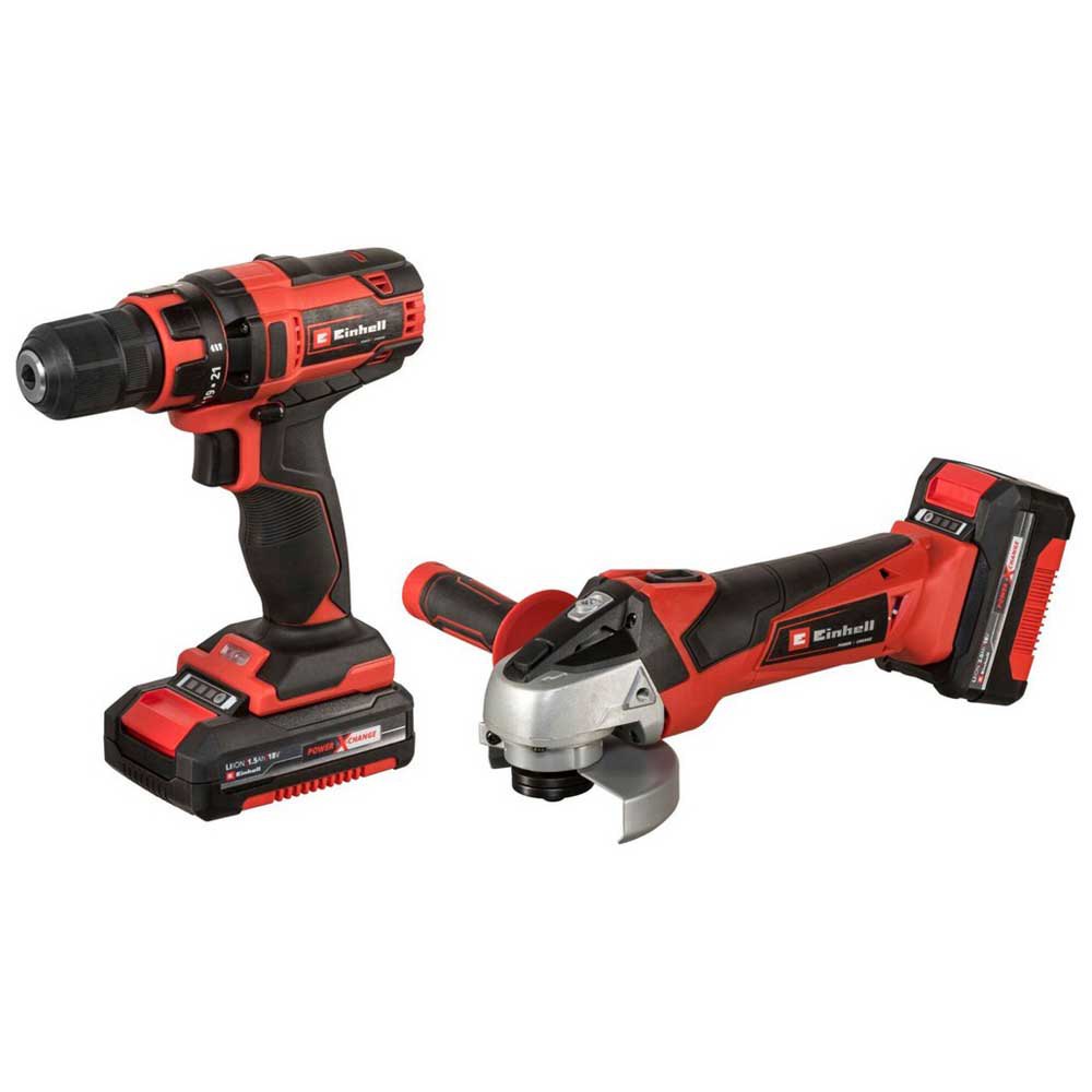 Juego de máquinas de cambio Power X compuesto por taladro de batería y amoladora angular de batería.Conjunto compuesto por:1x Taladro Atornillador Inalámbrico Tc Cd 18 / 35 Li1x Amoladora angular a batería Tc Ag 18 / 115 Li1x Batería Recargable 18V 3.0Ah Plus1x Batería Recargable 18V 1.5Ah1x cargador rápidoTaladro Atornillador A Batería Tc Cd 18 / 35 Li:Sistema de batería: X Cambio 18 VIluminación LED para trabajar en áreas oscurasDiseño ergonómico con empuñadura suaveNúmero de engranajes: 1Velocidad de ralentí: 0 550 min 1Máx. Par duro: 35 NmNúmero de pasos de torsión: 22Portabrocas: 10 Mm (Doble Manguito)Peso: 1,37 kgAmoladora angular a batería Tc Ag 18 / 115 Li:Sistema de batería: X Cambio 18 VAmoladora angular ligeraSeguridad: Protección de arranque suave y reinicioProtección de sobrecargaFuncionamiento silenciosoDimensiones compactas y empuñadura suave ergonómicaDiámetro del disco: 115 mm (suministrado sin disco de corte)Máx. Velocidad de ralentí: 8500 min 1Máx. Profundidad de corte: 28 mmPeso: 1,21 kg