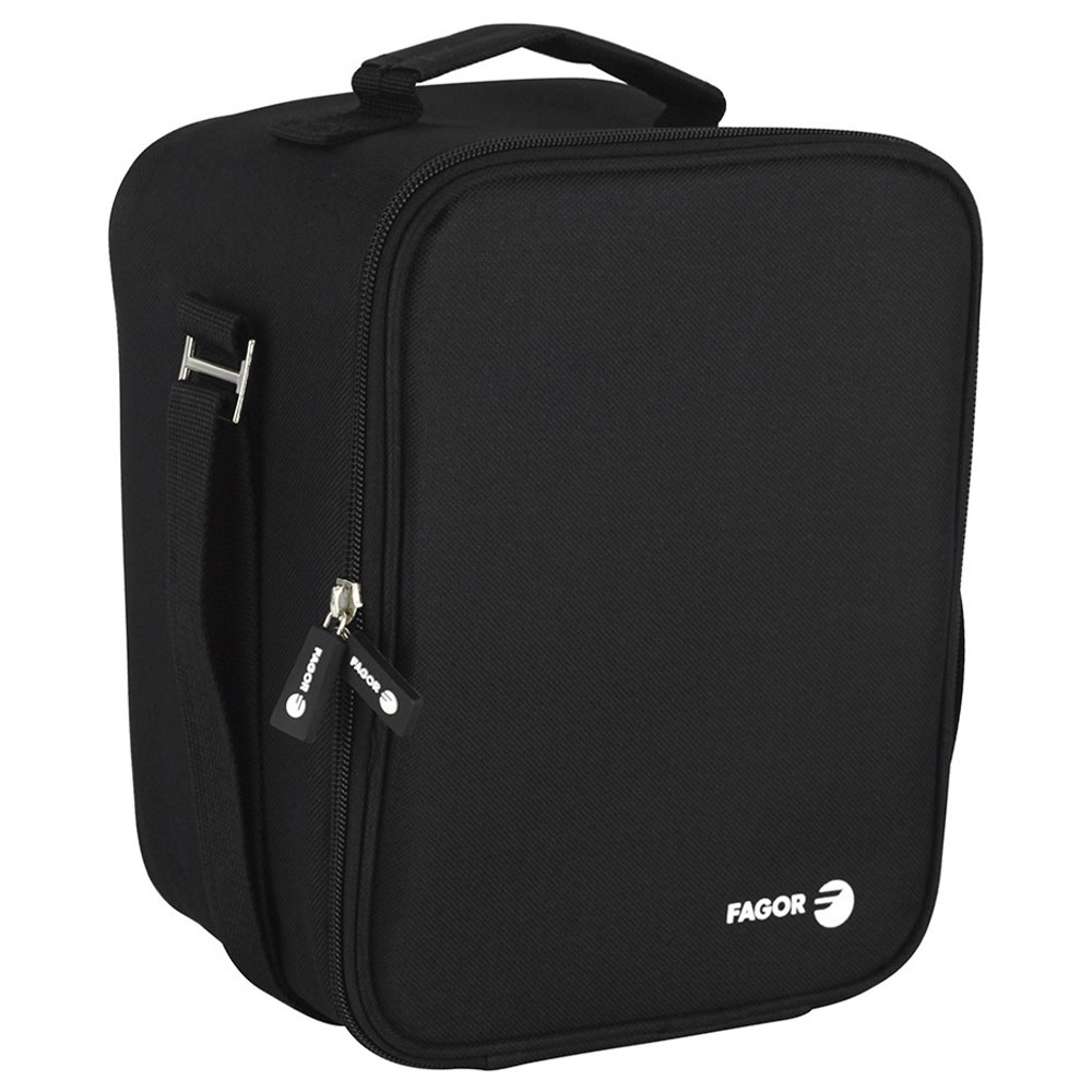 Bolsa comida tappy plus 24,5x17x17,5cm fagor. material semirrígido. resistente a las manchas. aislante frío / calor para conservar los alimentos a la temperatura deseada. con asa superior y bandolera extensible. incluye dos recipientes herméticos (0,82l cada uno) aptos para lavavajillas, congelador y microondas (en el caso del microondas, se recomienda introducirlo sin la tapa para no deformar las juntas y mantener su sellado intacto).Especificaciones:Tipo: bolsa porta alimentosModelo: TappyMedidas: 24,5x17x17,5 cmMaterial: semirrígidoPeso: 0,6180 KG
