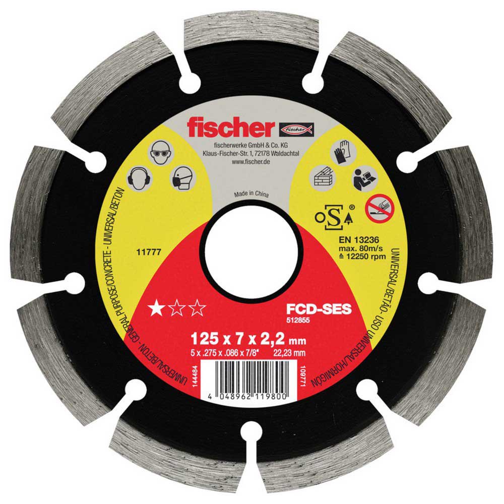 Disco de Corte Fcd Ses 115×2,0x22,23dia Fischer. Disco de corte de hormigón de alto rendimientoEspecificaciones:Tipo: Disco de corteAplicación: ConcretoTamaño: 115×2.0x22.23 Mm