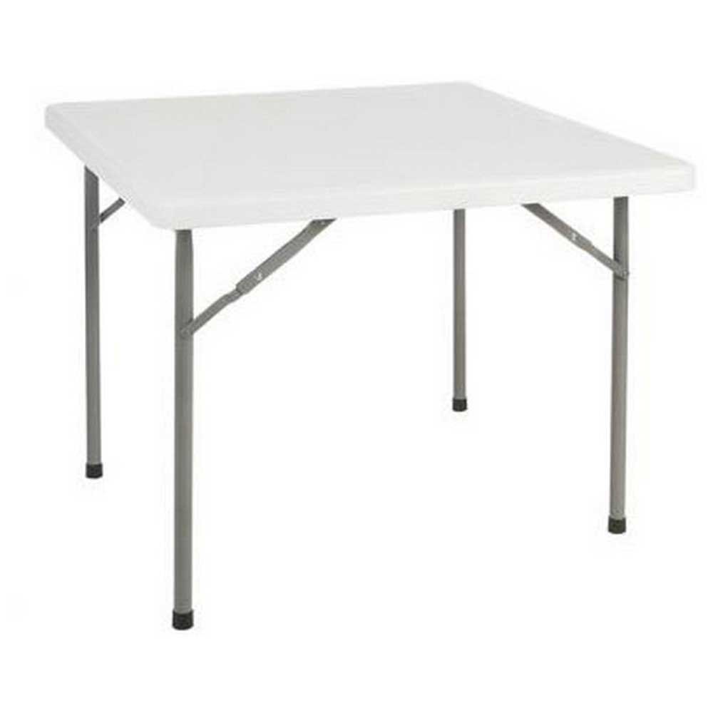 Mesa plegable con estructura de acero pintado y tablero de polietileno de alta densidad en color gris claro.Espesor de la mesa:45 mm.Tablero estanco de una sola pieza sin juntas.Peso neto:9 kg (19,84 libras).Travesaños ergonómicos.
