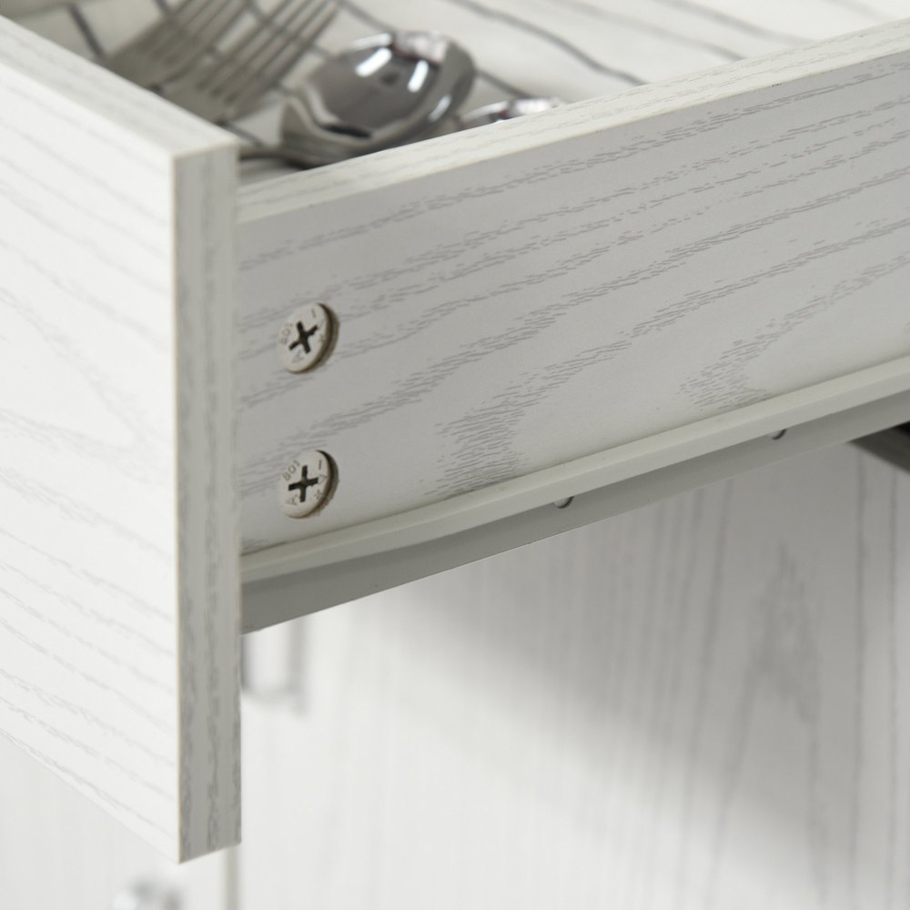 Añade espacio de almacenaje a tu hogar sin renunciar a la elegancia y harmonía.Este aparador de HOMCOM cuenta con un bonito diseño con puertas de vidrio enmarcadas y estructura en madera MDF en color blanco que combinará fácilmente con el resto de tus muebles y decoración.Cuenta con una amplia encimera y un gran espacio interior dividido con un estante central.Ideal para usar como mueble auxiliar, consola para tu televisor o como aparador para la cocina o entrada de casa.Características:- Mueble multifuncional que ofrece un espacio extra de almacenaje en cualquier rincón de tu hogar.- Su diseño lo hace ideal como mueble auxiliar en el comedor, la cocina, la sala de estar u otros espacios pequeños que necesitan un extra de almacenaje.- Para utilizar como buffet, armario de almacenaje o consola de TV.- Las puertas de vidrio enmarcadas permiten visualizar su interior a la vez que protege la vajilla o artículos varios de la acumulación de polvo.- El enmarcado de las puertas simulando el marco de una ventana, añade elegancia y modernidad al conjunto.- Hecho de MDF de madera y vidrio, es un mueble resistente y de fácil mantenimiento.- Incluye dispositivo antivuelco de seguridad para fijar a la pared y evitar que vuelque o se tambalee.- Requiere montaje.Especificaciones:- Color:blanco.- Material:MDF y vidrio.- Medidas totales:80×36,5×76 cm (LxANxAL).- Medidas interiores del armario:68,5×30,5×30/28,5 cm (LxANxAL).- Carga máxima:50 kg (total) y 10 kg (estante).- Referencia:838-063.