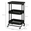 Un carrito de almacenaje es una herramienta fantástica para organizar tu espacio en casa o en el trabajo. Es ideal para espacios pequeños que necesitan un poco de almacenamiento extra. En concreto, este carrito de HOMCOM con ruedas cuenta con 1 encimera con un cajón y 2 cestas de rejillas para que puedas tener tus documentos ordenados, tu material para hacer manualidades, las toallas en el lavabo o las frutas en la cocina. También es perfecto como soporte para la impresora. Características – Carrito auxiliar con ruedas ideal para usar en la cocina, junto al escritorio, en el baño, la oficina y más – Su diseño de 3 niveles ofrece un amplio para los suministros y accesorios – Dispone de un cajón de plástico extraíble para guardar pequeños objetos como llaves o cubiertos – Encimera de MDF amplia, para guardar libros, plantas o alimentos en la cocina, entre otros – Las cestas de alambre permiten que el aire circule, lo que es perfecto para almacenar verduras, frutas y ropa doblada – Este carrito de almacenaje dispone de 4 ruedas, 2 de ellas con freno para facilitar el transporte de un espacio a otro – Fabricado con estructura de metal, encimera de madera MDF y ruedas de plástico PP para mayor estabilidad y robustez – Requiere montaje Especificaciones – Color: blanco y madera natural – Material: metal, plástico PP y MDF – Medidas totales: 43,9×30,5×75,6 cm (LxANxAL) – Medidas de la encimera: 39,5×29 cm (LxAN) – Medidas del cajón: 39,1×29,6×7,2cm (LxANxAL) – Medidas de la cesta central: 40,5x30x6,5 cm (LxANxAL) – Medidas de la cesta inferior: 41,5×30,5×6,5 cm (LxANxAL) – Carga máxima: 23 kg (total), 6 kg (cada cesta), 5 kg (encimera) – Referencia: 850-191