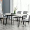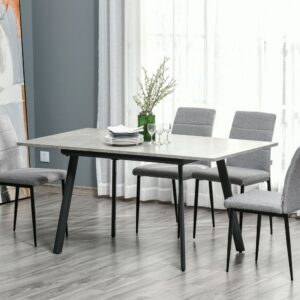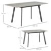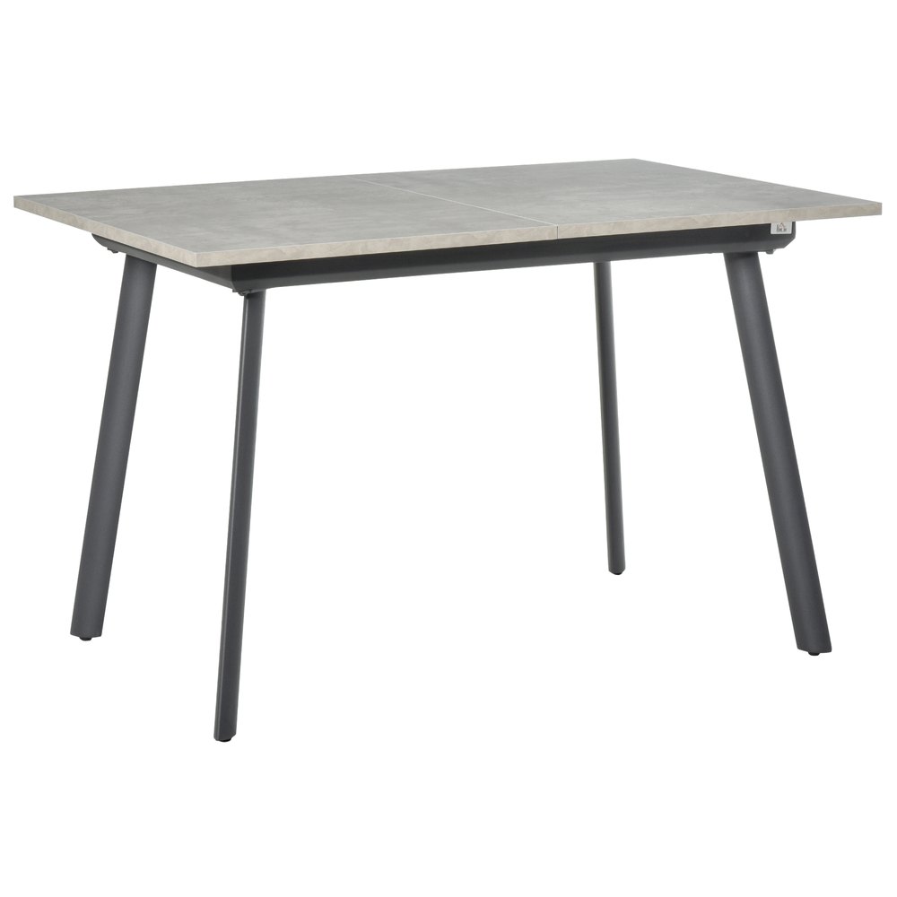 Ya sea una cena tranquila para 4 personas o una noche de juegos para 6, esta mesa de comedor extensible de HOMCOM es ideal para satisfacer múltiples necesidades.De estilo industrial y actual, presenta una estructura con patas de metal con un bonito diseño inclinado y una encimera de madera MDF efecto cemento.El contraste del color oscuro de los pies con la encimera más clarita, ofrece una mesa realmente bonita y visualmente llamativa.Características:- La encimera imitación cemento ofrece un aspecto industrial y actual.- Mesa extensible con espacio suficiente para 4-6 personas.- Fabricada en MDF laminado, resistente y fácil de limpiar.- Bonitas patas tubulares de metal ligeramente inclinadas.- Pies con almohadillas protectoras antideslizantes para mayor firmeza y estabilidad.- Las sillas pueden colocarse perfectamente bajo la mesa para ahorrar espacio.- Requiere montaje.Especificaciones:- Color:gris con efecto de cemento jaspeado, gris oscuro.- Material:MDF y metal.- Medidas de la mesa extendida (6 personas):160x80x76 cm (LxANxAL).- Medidas de la mesa sin extender (4 personas):120x80x76 cm (LxANxAL).- Distancia entre las patas (largo de la mesa):85,5 cm.- Distancia entre las patas (ancho de la mesa):62 cm.- Carga máxima:50 kg.- Referencia:835-416.