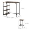 ¿Quieres beber algo para eliminar el estrés del día? Entonces necesitas este mueble bar de HOMCOM, tan solo tendrás que escoger tu bebida y tomarla en un espacio acogedor.Esta mesa alta bistró cuenta con una espaciosa encimera y 3 estantes, uno de ellos es un botellero con capacidad para tres botellas.Ofrece espacio suficiente para almacenar los cubiertos.Su diseño simple y elegante hacen de esta mesa ideal para tomar un tentempié o disfrutar de una charla entre amigos tomando una copa.Características:- Mueble bar de diseño original compuesto por encimera y 3 compartimentos, uno de ellos con función de botellero.- Práctico botellero con capacidad de 3 botellas, solución compacte de almacenaje.- El estilo moderno de esta mesa bistró hace que se adapte perfectamente a un entorno moderno y/o tradicional.- Base y detalles metálicos, encimera y estantes de madera de MDF laminada, para uso a largo plazo y fácil de limpiar.- También se puede utilizar como mesa de buffet o aparador de almacenaje en bar y comedor.- Se requiere montaje.Especificaciones:- Color:blanco y plata.- Material:metal y MDF.- Medidas totales:113x40x105 cm (LxANxAL).- Medidas del estante:40x40x32,5 cm (LxANxAL).- Base redonda:Φ39,5 cm.- Capacidad máxima de carga:70 kg (superior) y 15 kg (estante).