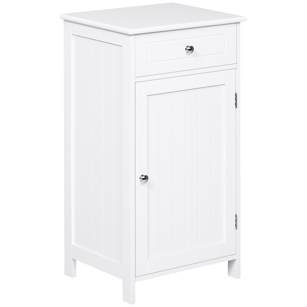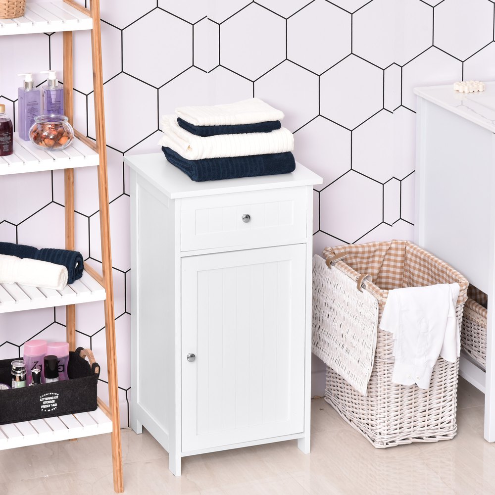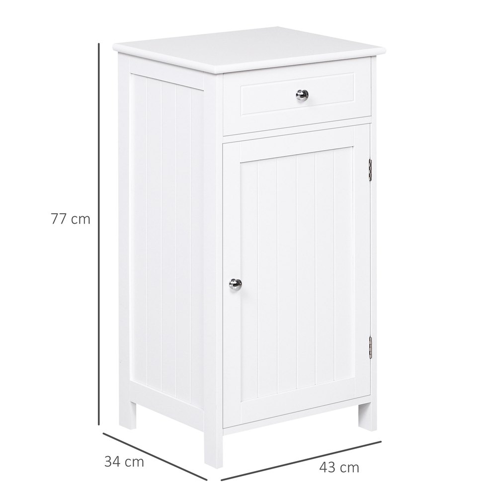 Completa tu baño o cocina con este mueble de Kleankin, diseñado para integrarse fácilmente en cualquier espacio. Su diseño compacto, que ahorra espacio, es ideal para inodoros pequeños, ya que ofrece un amplio espacio para artículos de tocador y productos de limpieza. Este mueble auxiliar de baño hecho de MDF y pintado en color blanco, cuenta con 1 cajón y un armario con un estante interior ajustable, ambos con tiradores cromados. Características – Mueble moderno y funcional de tamaño compacto, ideal para espacios pequeños – Amplio espacio de almacenamiento para artículos de tocador y artículos de limpieza – Estante interior ajustables para almacenar artículos de acuerdo a tus necesidades – Hecho de tablero de MDF pintado con base elevada para proteger los artículos de la humedad del suelo – Cajón y puerta con elegantes tiradores cromados – Se puede usar en el baño, el dormitorio, la sala o el comedor – Diseño antivuelco para mayor seguridad – Se requiere montaje Especificaciones – Color: blanco – Material: tablero MDF – Medidas totales: 43x34x77 cm (LxANxAL) – Medidas del cajón: 34x29x13,5 cm (LxANxAL) – Medidas del estante: 36,5x30x26 cm (LxANxAL) – Medidas de la puerta: 36,5×54 cm (LxAN) – Carga máxima: 20 kg – Referencia: 834-184