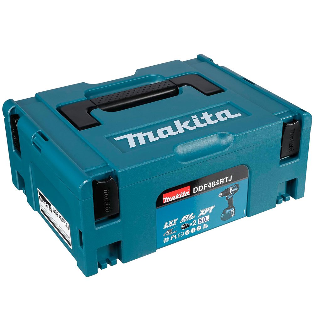 Destornillador inalámbrico Makita DDF484RTJ 18 VCaracteristicas:CompactoCaja de engranajes de aluminio fundido a presiónMayor vida útil y más resistencia gracias al motor sin escobillasAjuste de par de 21 veces más ajuste de perforaciónEngranaje planetario de metal completo con 2 engranajesLuz de trabajo LEDFreno del motor y indicador de capacidad de la batería en la batería