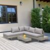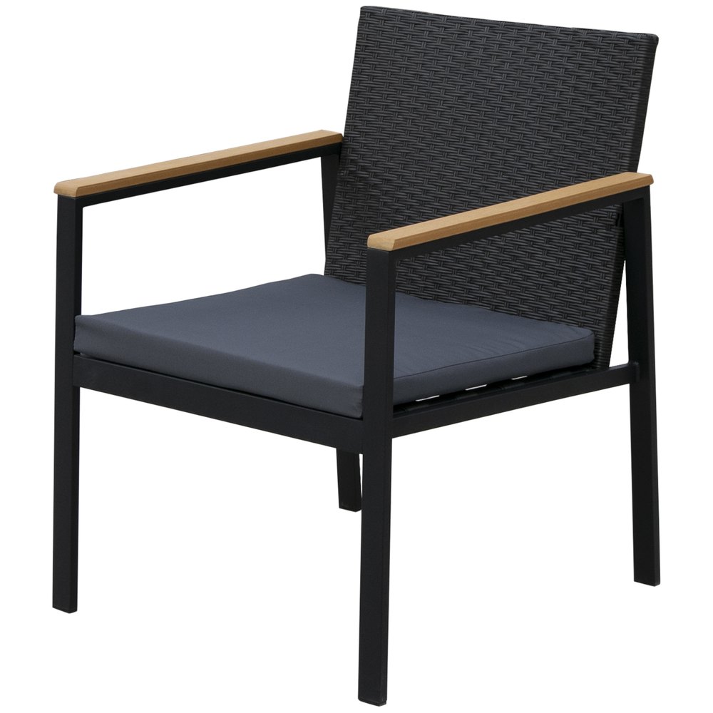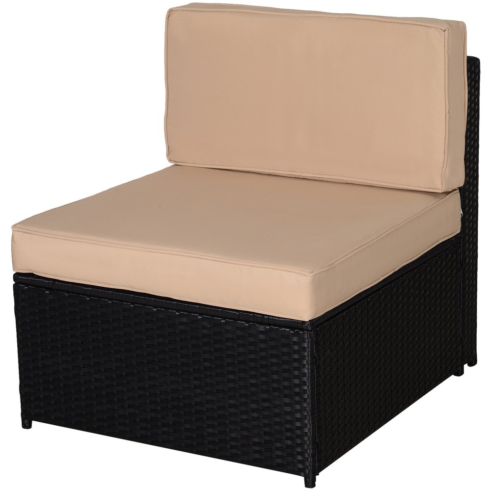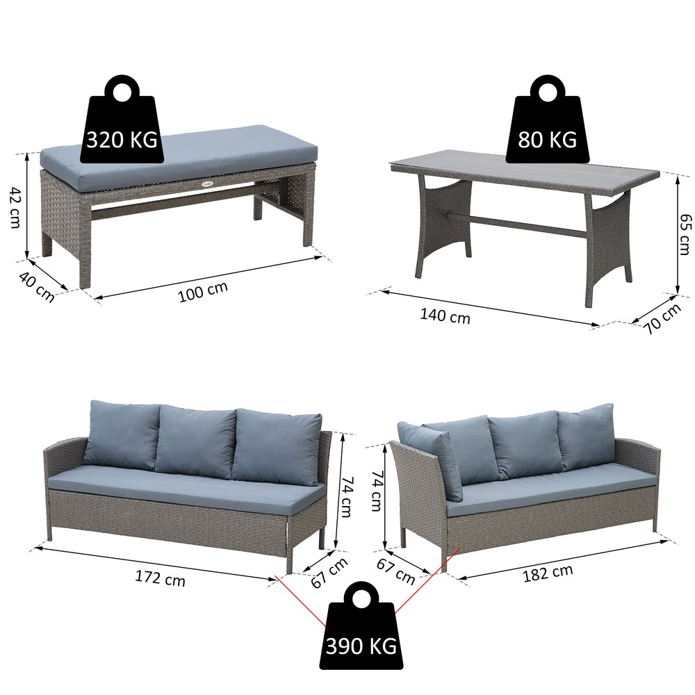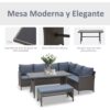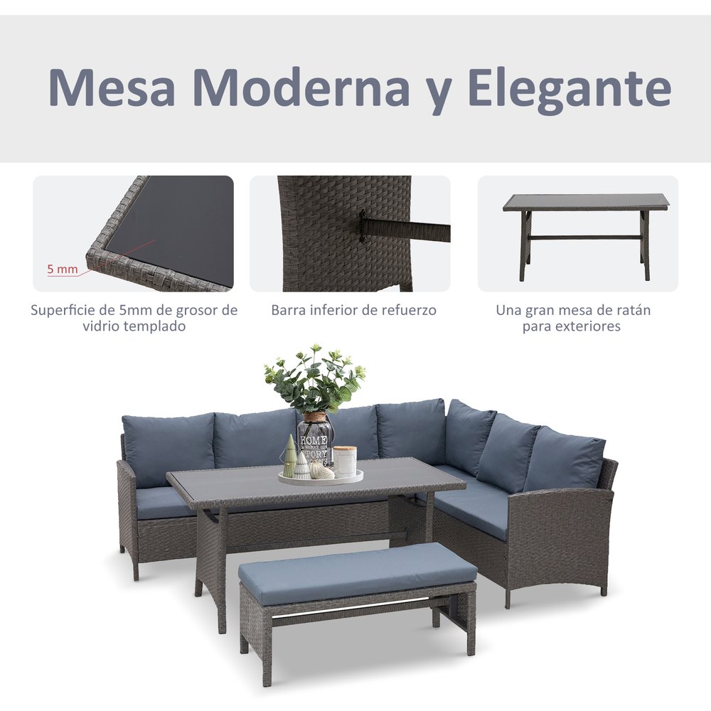 ¿Buscas un conjunto de muebles de exterior? Presentamos este precioso conjunto de muebles de jardín fabricado en ratán, muy elegante e ideal para decorar tu jardín o terraza.El conjunto está compuesto por 1 mesa, 2 sofás esquineros, 2 sofás individuales y 2 taburetes.La estructura es de acero galvanizado, cubierta con ratán muy resistente al exterior y a los rayos UV.Con este producto podrás disfrutar cómodamente al aire libre en buena compañía.Características:- Este conjunto de jardín incluye 2 sofás individuales, 2 sofás esquineros, 2 taburetes y 1 mesa central.- Perfecto para jardín, parque, patio, terraza u otros lugares al aire libre.- Marco de metal galvanizado con recubrimiento en polvo, cubierto con ratán PE resistente a la intemperie.- Cojines y almohadas acolchados gruesos para mayor comodidad.- Los cojines de asiento con la funda de poliéster resistente al agua y es fácil de lavar con cremallera.- Almohadillas ajustables para los pies lo mantienen estable.- La encimera de vidrio templado de 5 mm de espesor es resistente y fácil de limpiar.- Se requiere ensamblaje.Especificaciones:- Color:negro, caqui, verde.- Material:metal galvanizado, ratán PE, poliéster.- Medidas de sofá esquinero:80x80x71 cm (LxANxAL).- Medidas de sofá individual:70x80x71 cm (LxANxAL).- Medidas de taburete:70x70x34 cm (LxANxAL).- Medidas de la mesa:85x55x34 cm (LxANxAL).- Medidas del asiento:70x70x34 cm (LxANxAL).- Medidas del cojín de asiento:70x70x8 cm (LxANxAL).- Medidas del cojín de respaldo:70x37x16 cm (LxANxAL).- Medidas de las almohadas:40×40 cm (LxAN).- Capacidad de carga:160 kg (cada asiento), 120 kg (taburete), 50 kg (mesa).- Referencia:860-002V02.