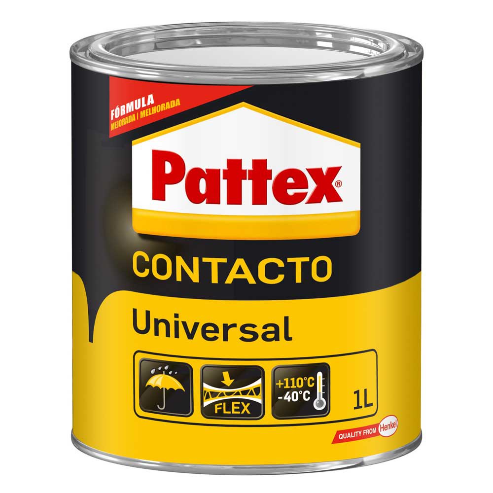 Pattex Universal Contact pega de forma rápida, segura y resistente, es fácil de extender y es ideal para pegar superficies mixtas y para pegar láminas o esquinas complicadas.Este pegamento fuerte se puede aplicar sobre una gran cantidad de materiales, como laminados decorativos, tableros de partículas, caucho y caucho, corcho, cuero y cuero, plásticos rígidos, espumas, materiales textiles y metales.