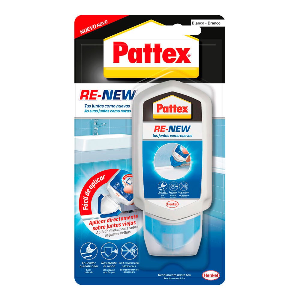 Pattex renovar 80ml. Silicona a base de agua, fácil uso con una excelente resistencia al moho en el marco de aplicación en baños, tiempo de secado 6 horas, color blanco mate.Especificaciones:Peso: 0,1900 kgResistente a la intemperie: noFitness: pastaUnidades por blister: 1Aplicación: sanitarioTipo: silicona a base de aguaContenido: 100 gr