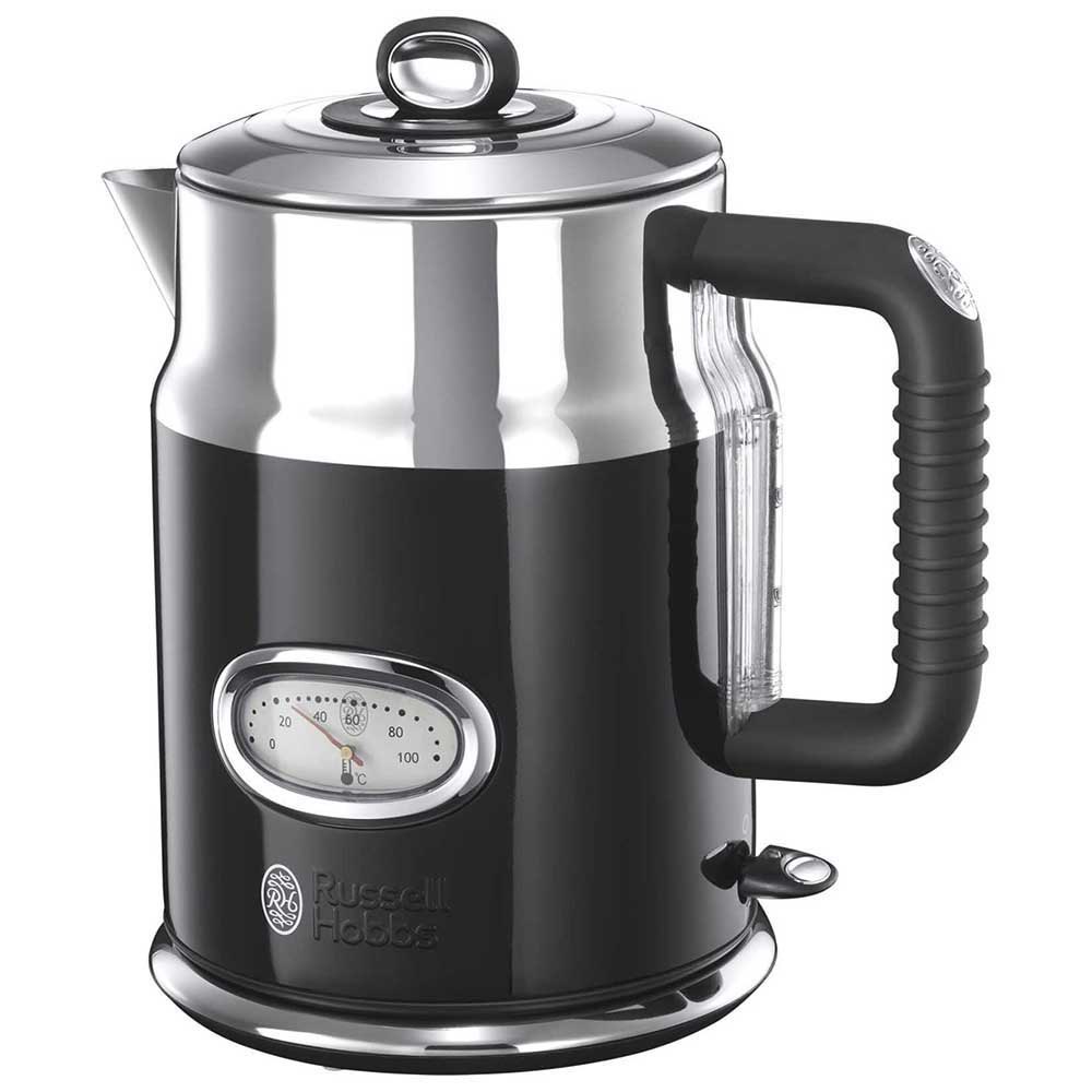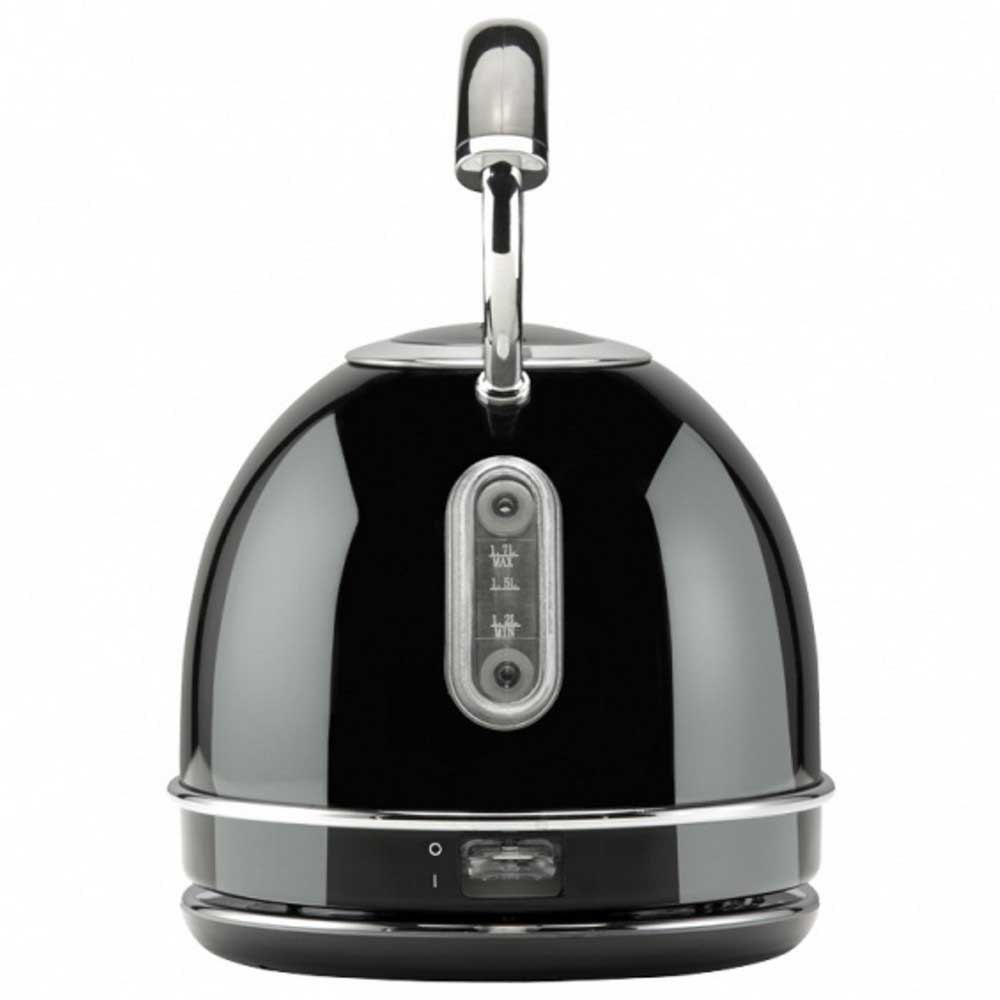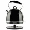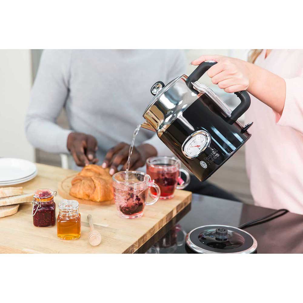 El hervidor retro de 2400 vatios muestra la temperatura alcanzada con la elegante pantalla retro de temperatura del agua. Además, el hervidor tiene todas las características importantes, como el elemento calefactor cubierto, la función de ebullición rápida y el pico ´´Perfect Pour´´ para un vertido perfecto.Características:Pantalla de temperatura del agua retro Muestra la temperatura actual del aguaFunción de cocción rápida para 1,2 o 3 tazasHierve una taza de agua (235 ml) en 55 segundosEl pico de vertido perfecto permite verter sin goteo.Cubierta removibleElemento calefactor ocultoFiltro de cal extraíbleEnchufe inalámbrico de 360°, ideal para usuarios diestros y zurdosProtección contra sobrecalentamiento/caminar en secoParada de cocción automática y opción de apagado manualIndicador de nivel de agua externo con marca de cantidad de llenadoEnrollacables sobre baseSuperficie fabricada en acero inoxidable pintado de alta calidad con aplicaciones de plásticoEspecificaciones:2400 vatios1,7 l de capacidad