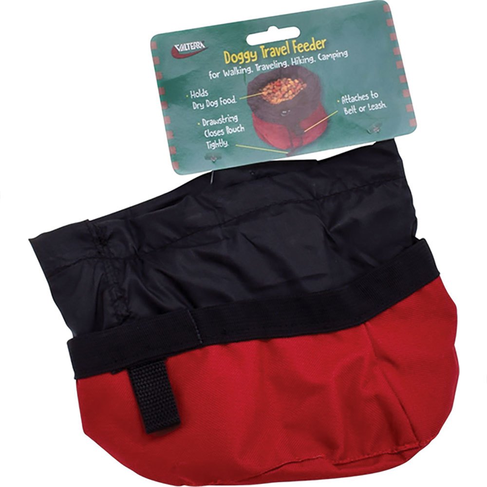 Sostiene comida seca para perros. El cordón cierra la bolsa con un lazo lateral ajustado para sujetarlo al cinturón o la correa.